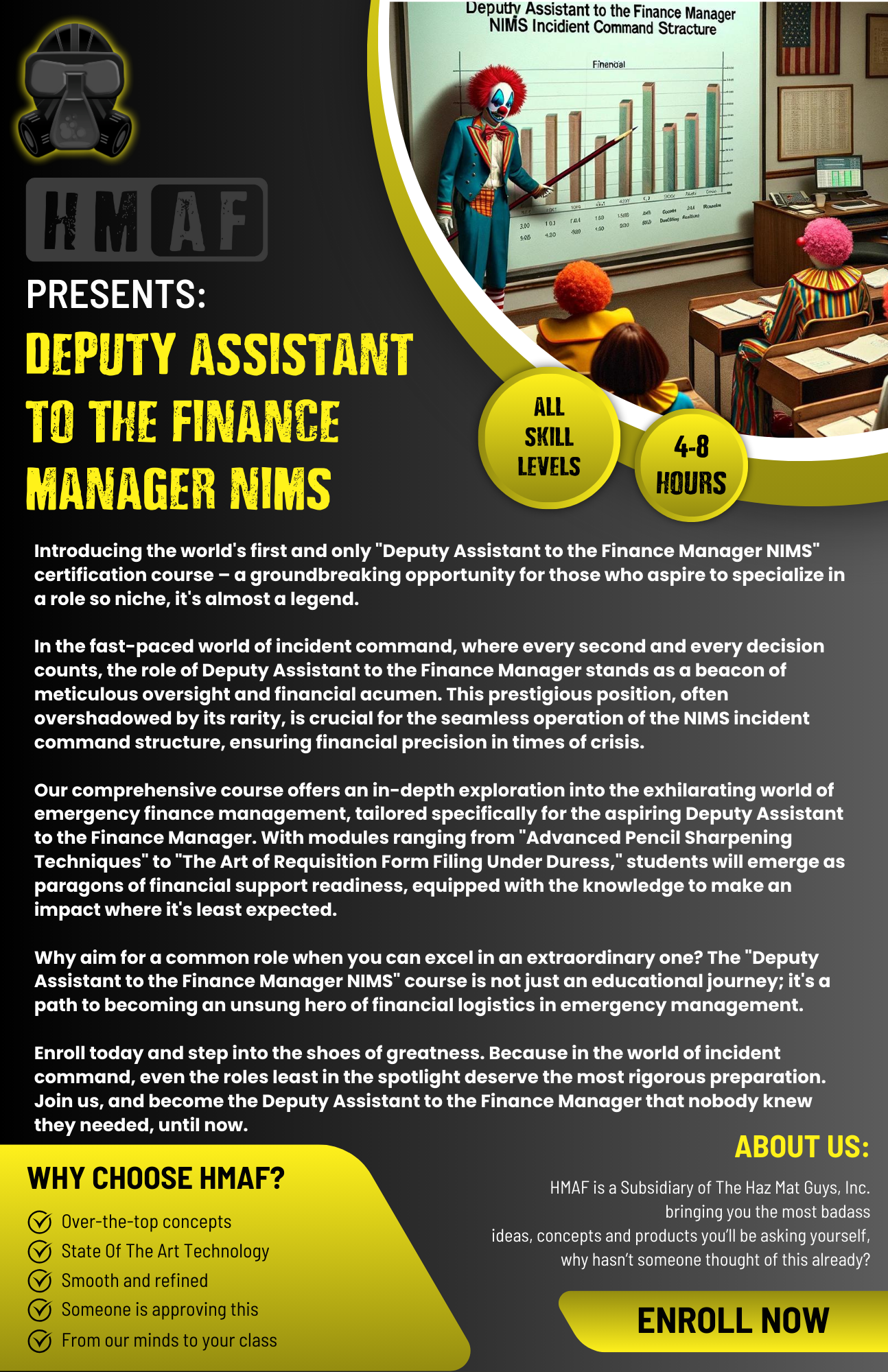 Introducing the world’s first and only “Deputy Assistant to the Finance Manager NIMS” certification course. Aspire to specialize in a role so niche, it’s almost a legend.